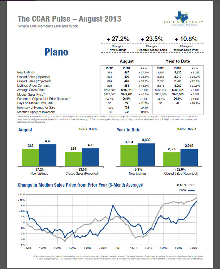 Plano Real Estate Market: Reported for the month